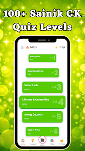 Sainik School GK Test Class 6 es una aplicación educativa diseñada para estudiantes que se preparan para el examen de ingreso a la Sainik School. Centrada en el conocimiento general, la app combina contenido orientado a exámenes con un aprendizaje basado en juegos, manteniendo a los estudiantes motivados. Ofrece preguntas de GK alineadas con el plan de estudios del examen AISSEE, cubriendo áreas clave como historia, geografía y ciencia.